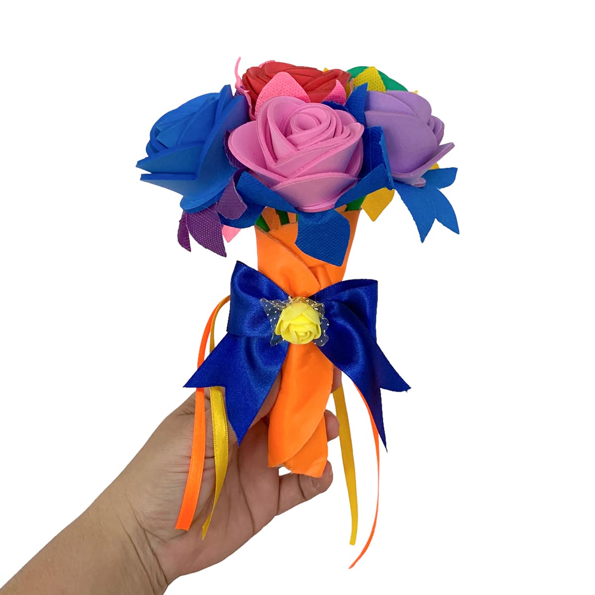 Material: EVA, TNT, Tecido Acoplado, Varetas de Plástico, Fitas de Cetim e Aviamentos